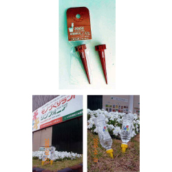 ■空きペットボトルに水を入れてノズルをはめ、土中に差すだけの手軽さで自動的に給水出来ます。